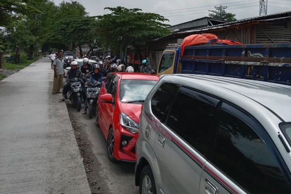 Selain itu, penyempitan jalan membuat arus lalu lintas harus berjalan bergantian.