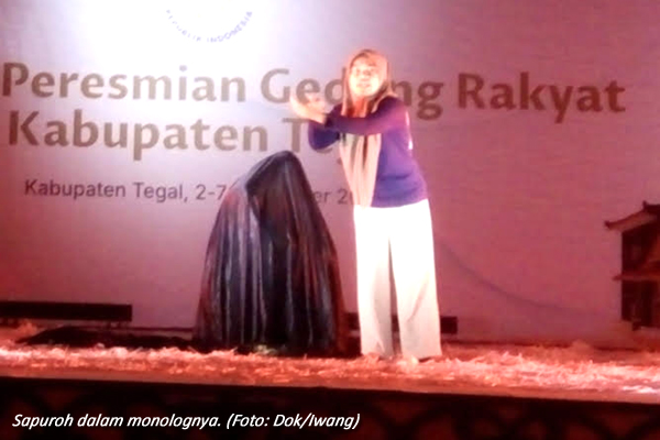 "Pan péntas monolog ka ngenténi penonton kalah karo lomba manuk," diselingi dengan humor.