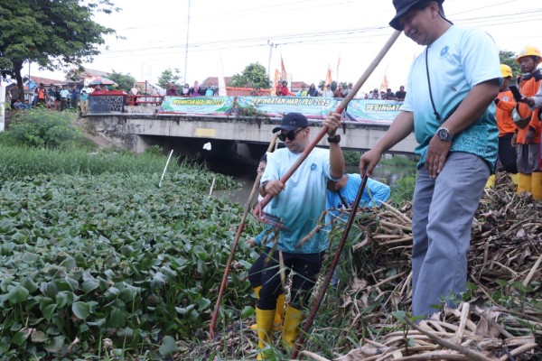 Kegiatan tersebut difokuskan pada pengangkatan eceng gondok, pembersihan sampah, serta pengerukan sedimen yang menghambat aliran air.