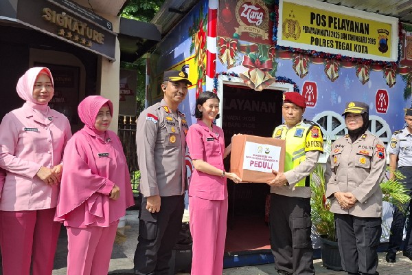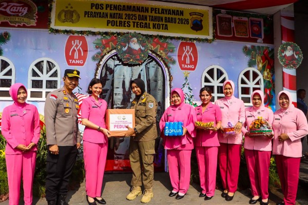 PanturaNews (Tegal) - Ketua Bhayangkari Cabang Tegal Kota Ny. Uwit Putu Krisna bersama jajaran pengurus Bhayangkari melaksanakan kunjungan ke sejumlah pos pelayanan pengamanan Natal 2025 dan Tahun Baru 2026 di wilayah Kota Tegal, Selasa 23 Desember 2025.