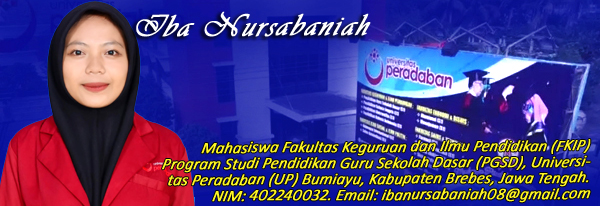 PENELITIAN ini dilaksanakan oleh Iba Nursabaniah, mahasiswa Program Studi Pendidikan Guru Sekolah Dasar (PGSD) Fakultas Keguruan dan Ilmu Pendidikan (FKIP) Universitas Peradaban Bumiayu, Kabupaten Brebes, Jawa Tengah.