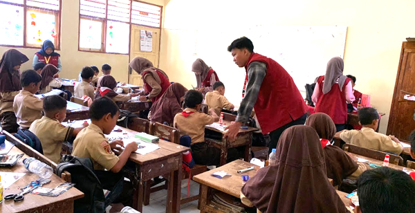 Siswa terlihat antusias serta aktif dalam menuangkan ide kreatif mereka ke dalam bentuk karya seni yang unik dan beragam. Dengan cara menempelkan barang bekas tersebut kesebuah gambar yang sebelumnya sudah disiapkan oleh mahasiswa KKN, siswa dapat menempelkan barang bekas tersebut menggunakan lem kertas.