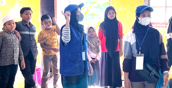 Selain kegiatan seni, mahasiswa juga melaksanakan program “Rumoh Pulih” yang berisi psikoedukasi sederhana bagi anak-anak. Program ini bertujuan membantu anak-anak mengenali emosi mereka, memahami cara sederhana mengelola perasaan takut atau cemas, serta membangun kembali rasa aman setelah bencana.
